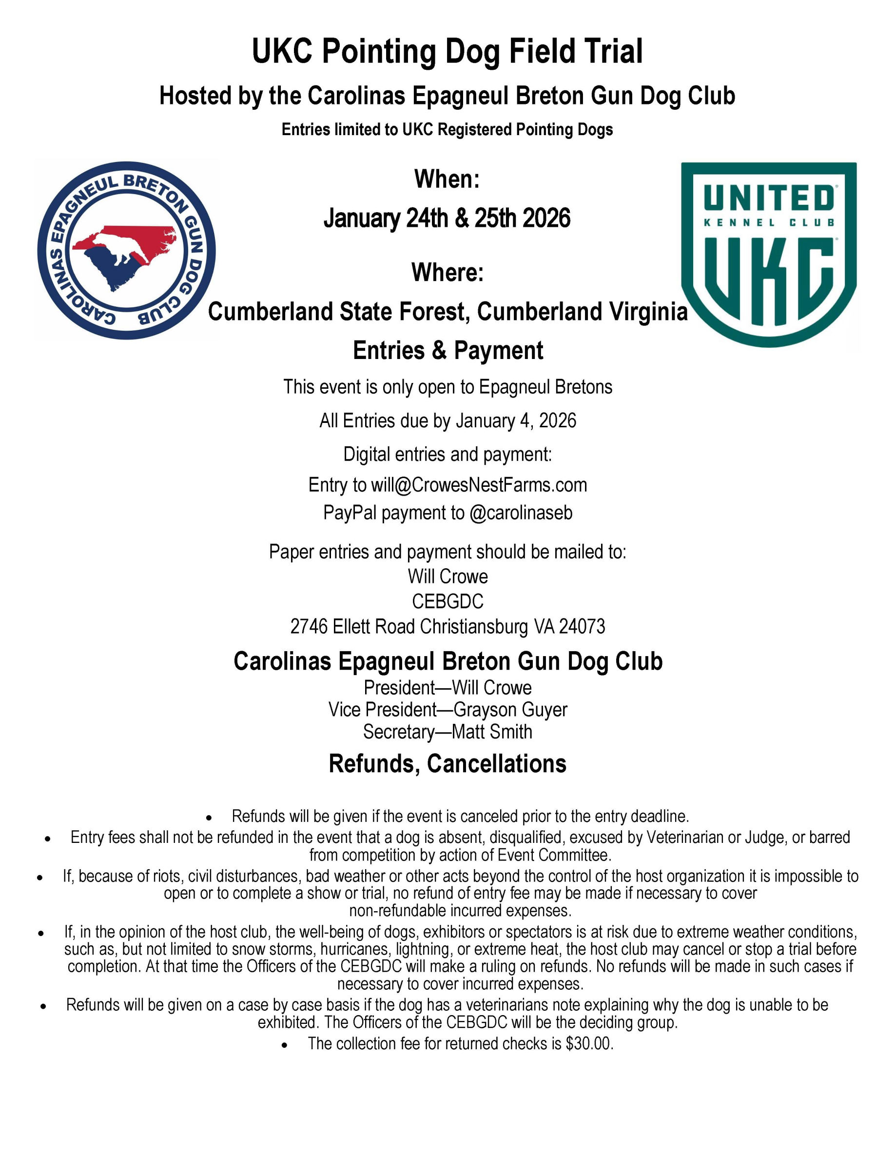 © Copyright 2025 Carolinas Epagneul Breton Gun Dog Club - All Rights Reserved